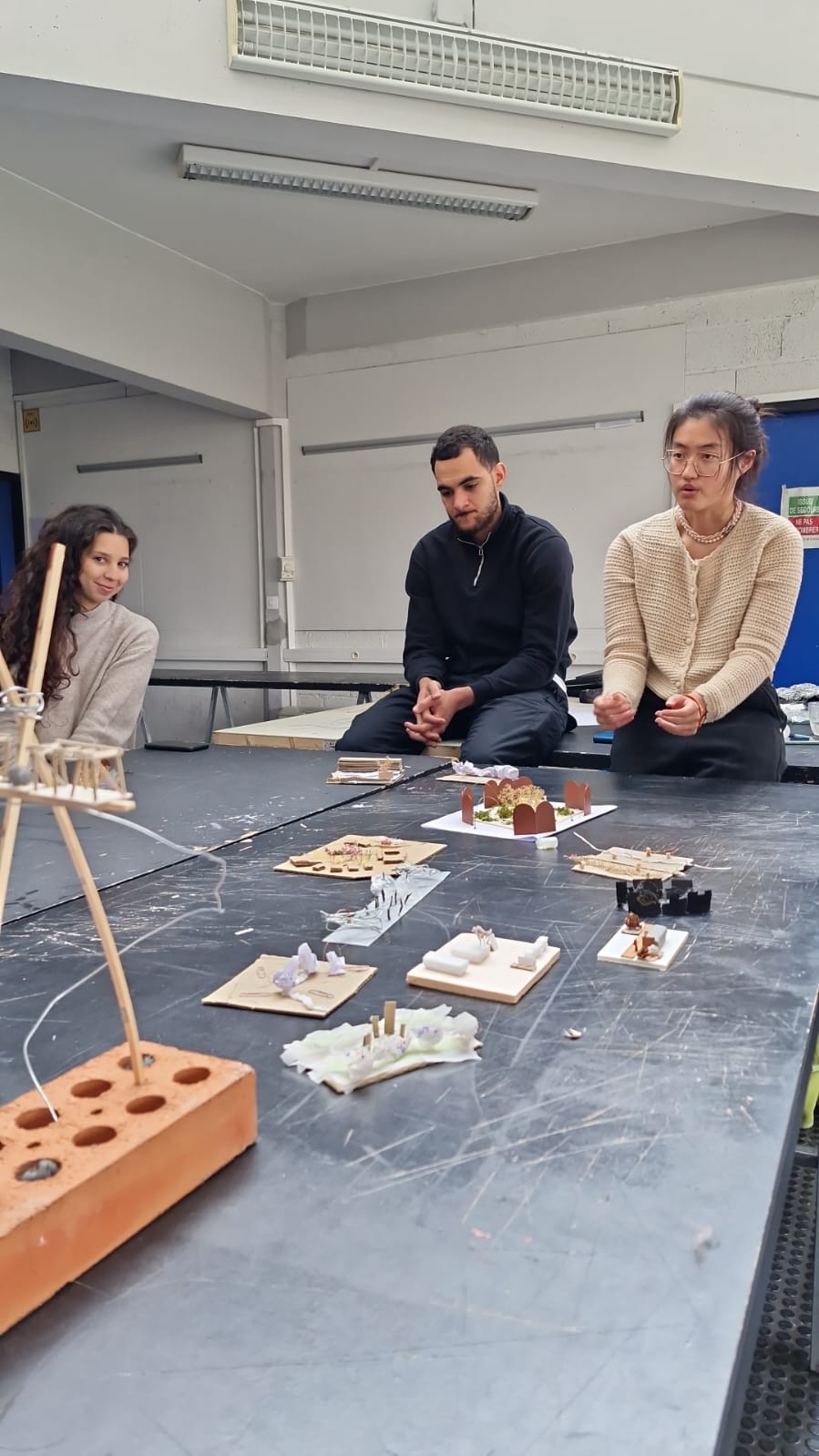 L’après-midi était consacrée à la réalisation d’une maquette de poche par personne avec les matériaux de la boite de trucs et bidules. Cette maquette se veut représenter de manière sensible nos intentions de projet.